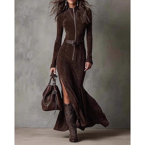 Per donna Normale Tuta Attivo Tinta unica Manica Lunga Collo alla coreana Cerniera Spacco Vacanza Quotidiano Vestibilità regolare Marrone Autunno
