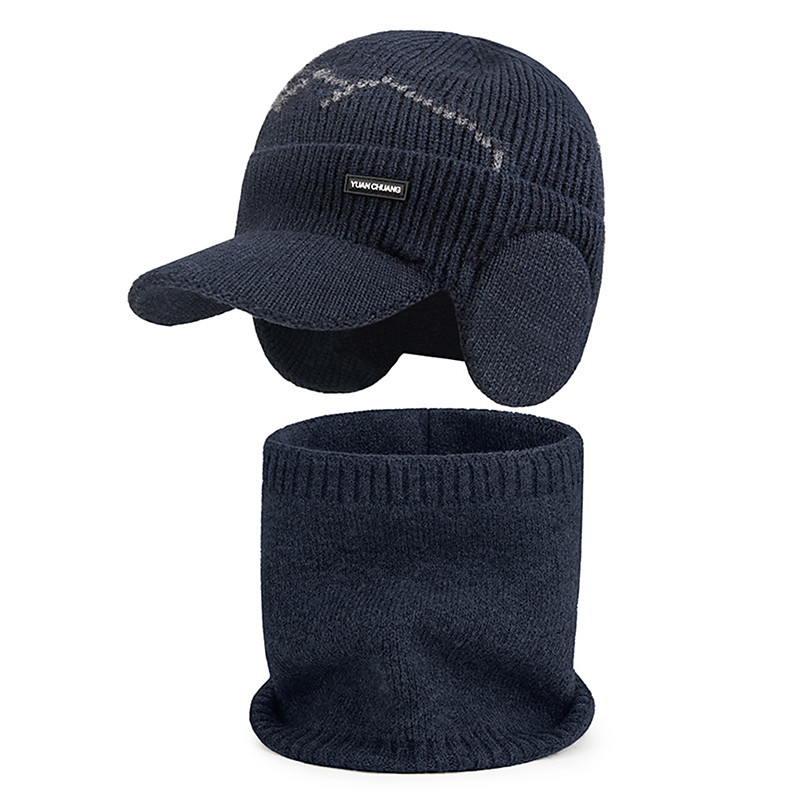 Unisex Acrylic Knit Hat Scarf Set, Adjustable Ear Flaps, Multiple Colors, Perfect for Winter Sports Outdoor Activities