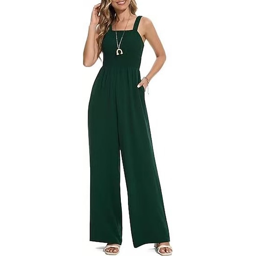 Per donna Normale Tuta Attivo Tinta unica Senza Maniche Gamba larga Collo quadrato Tasca Quotidiano Vacanza Vestibilità comoda Nero Vino Blu marino Estate