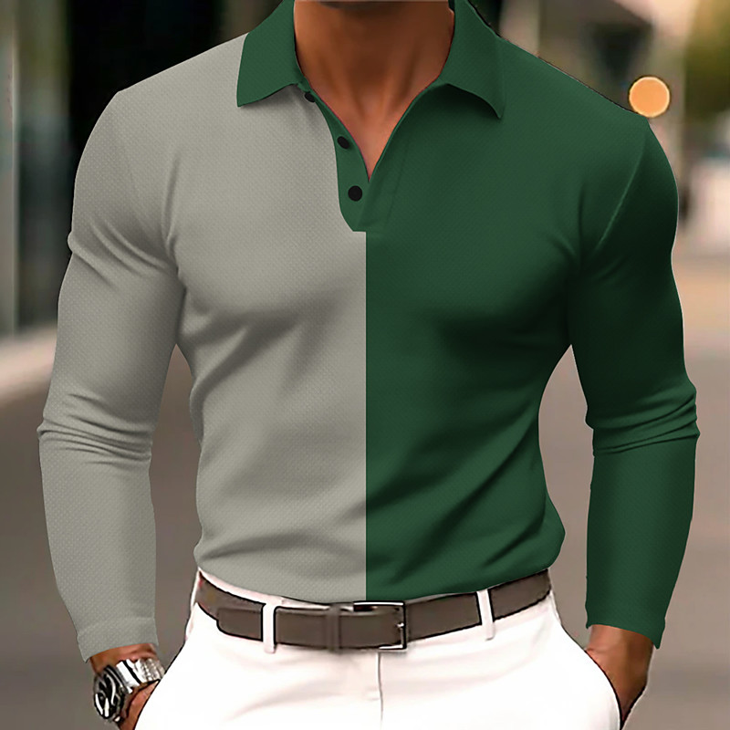 Men's Color Block Polo Long Sleeve Polo Shirts Lapel Casual Outdoor Athleisure Daily Wear 3D Print Buttons Spring Fall Blue Red Sky Blue