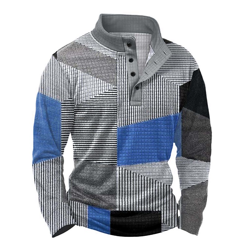Men's Geometric Waffle Sweatshirt Daily Classic Casual Stand Collar Outdoor Home Work Gift Blue Yellow Orange Green Buttons Fall Winter Designer S M L XL XXL XXXL