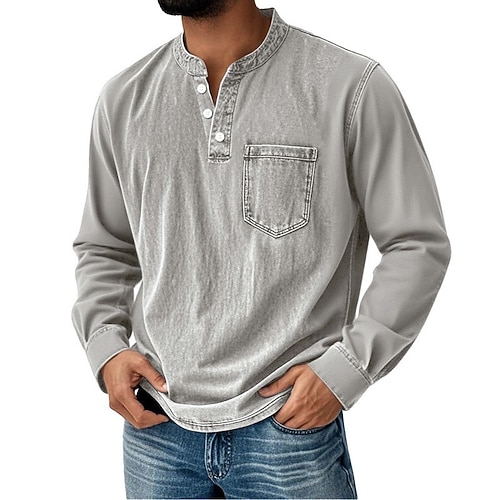 Per uomo Vintage Maglia Henley Camicia 100% cotone lavaggio acido Maglietta Manica Lunga Retrò Vintage Casual Casuale Primavera Autunno Tutte le stagioni Blu Nero Rosa Viola Marrone Henley Maglietta