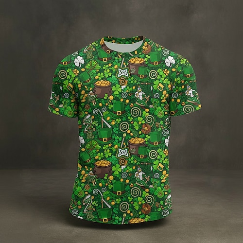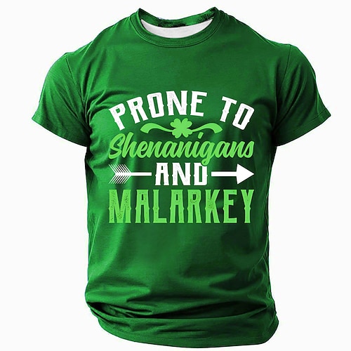 San Patrizio Per uomo Trifoglio Irlandese fortunato maglietta Manica corta maglietta Stampa 3D Camicia Informale Giornaliero Nero Verde Grigio Primavera estate Abbigliamento S M L XL XXL XXXL