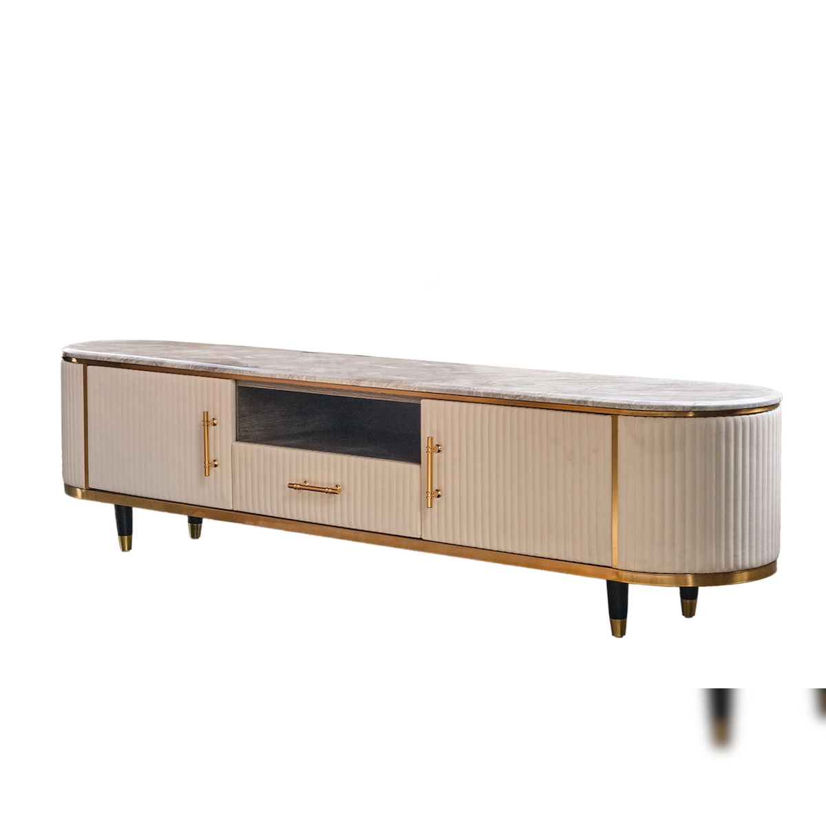 KAWOLA Lowboard MARIA TV-Bank Marmorplatte Kunstleder weiß