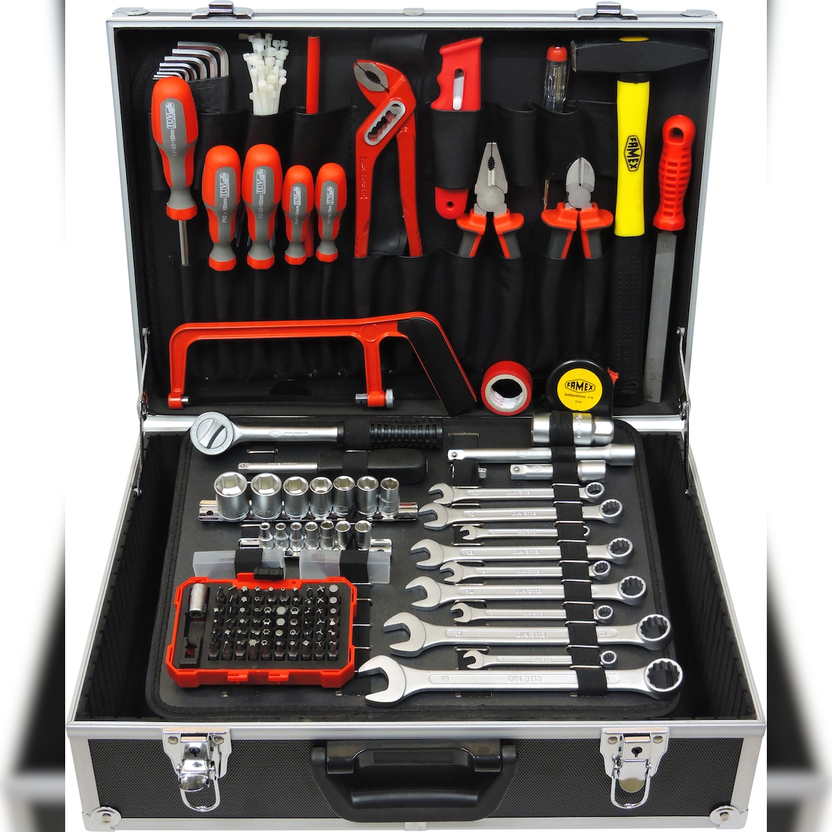 FAMEX 758-63 Alu Werkzeugkasten gefüllt mit Werkzeug 132-tlg. - Werkzeugkasten bestückt