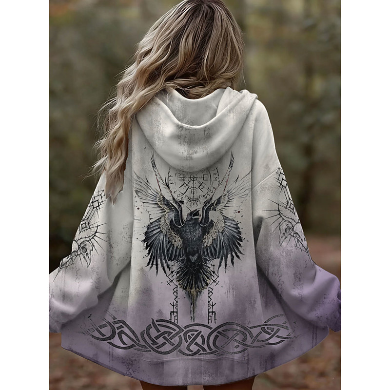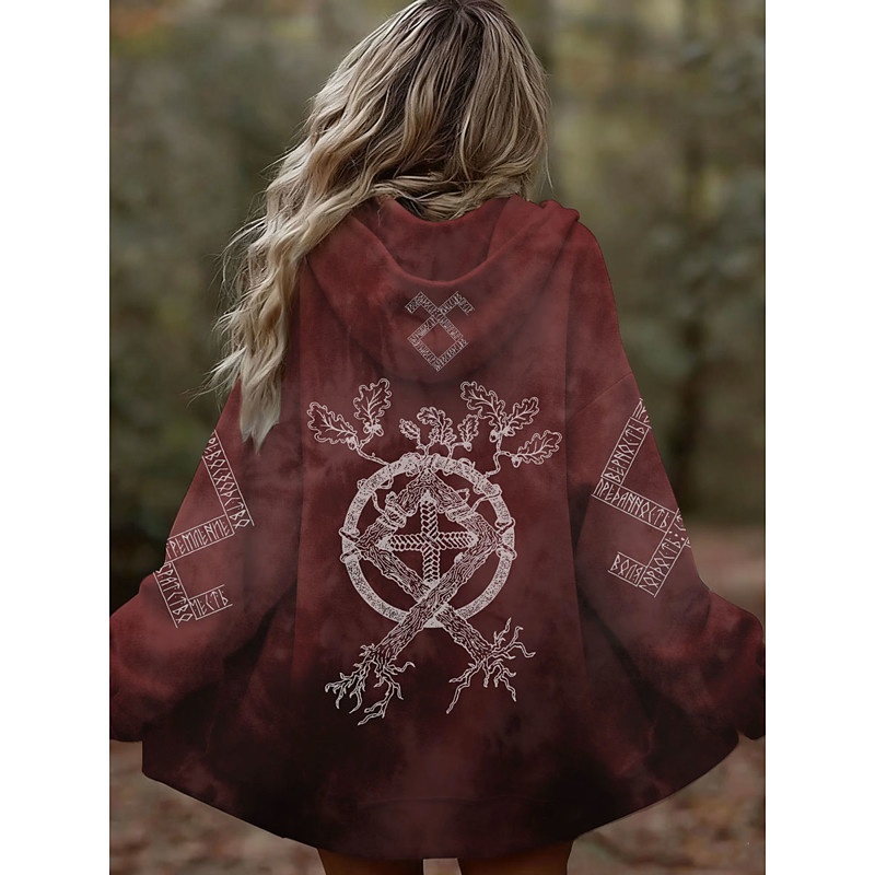 Women's Zip Up Hoodies Graphic Tribal Fashion Casual Long Sleeve Hooded Regular Tops Street Dailywear Zipper Pocket Print Blue Wine Purple Green Spring Fall