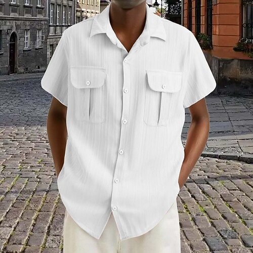 Per uomo Camicia Tessuto Camicia da lavoro Camicia Jacquard Marrone Scuro Nero Bianco Rosa Vino Manica Corta Semplice Bavero Quotidiano Vacanza Tasca Abbigliamento Streetwear Casual
