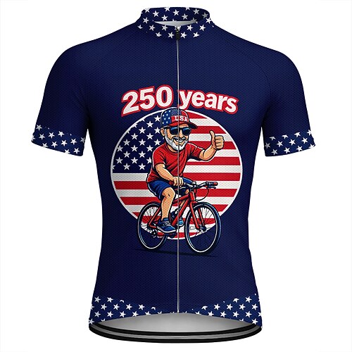 250° anniversario dell'America Giornata dell'indipendenza Da uomo Maglia da Ciclismo Maglia da downhill Bandiera Americana Manica Corta Bicicletta Maglia Maglietta con 3 tasche posteriori Mountain
