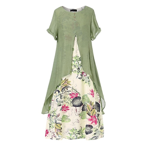 Per donna Abito Midi Vestito Casual Abito Floreale Elegante Casual All'aperto Spiaggia Vacanza Vestibilità comoda Floreale Leopardo Colore Puro Mezza Manica Girocollo Nero Viola Fucsia Verde