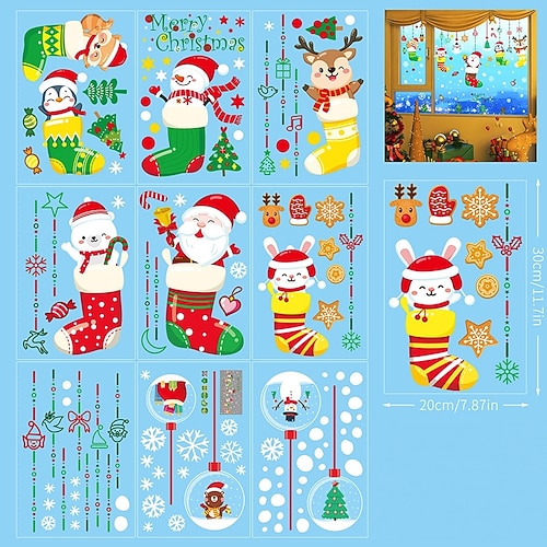 9 fogli adesivi rosa natalizi 3d per finestre, babbo natale, casa decorazioni per porte in vetro a forma di fiocco di neve per decorazioni natalizie