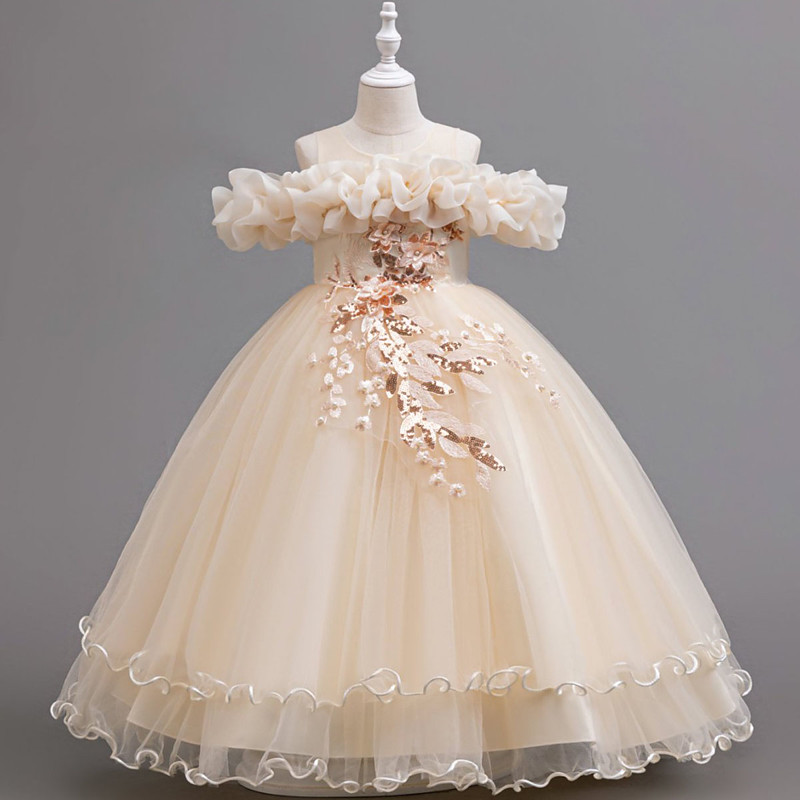 Flower Girl Dress Kid's Girls' Princess Dress Performance Wedding Party Elegant Beautiful Mesh Solid Color Sleeveless Crew Neck White Champagne 4 years