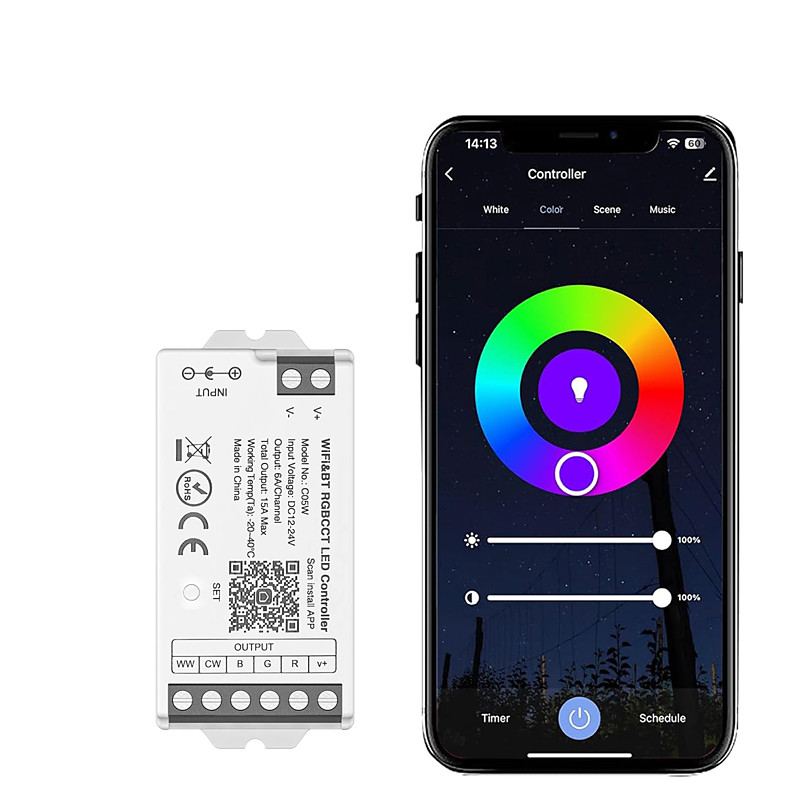 5050SMD FCOB COB RGBCCT RF 2.4GHz Wireless Remote RC03RFB C05RF Tuya Controller Kit 4 Zones Group Control PWM RGBWW(R G B C W) 6pin LED Strip DC5V DC12V DC24V