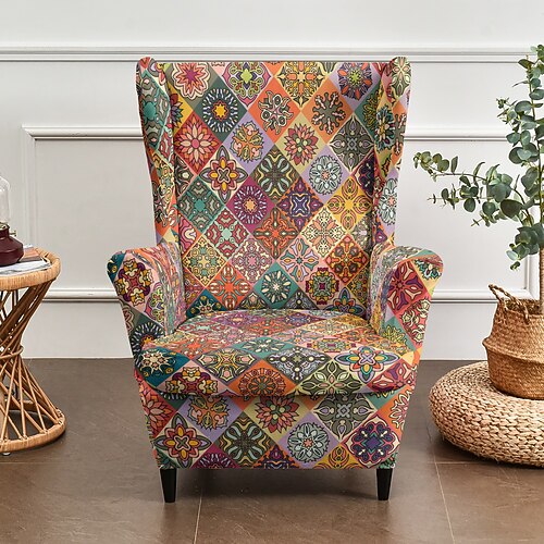Copripoltrona con schienale alto, copripoltrona in poliestere stampato con motivi geometrici a righe floreali, copripoltrona completo, moderno, pieghevole, alla moda, in stile coreano, coprisedia