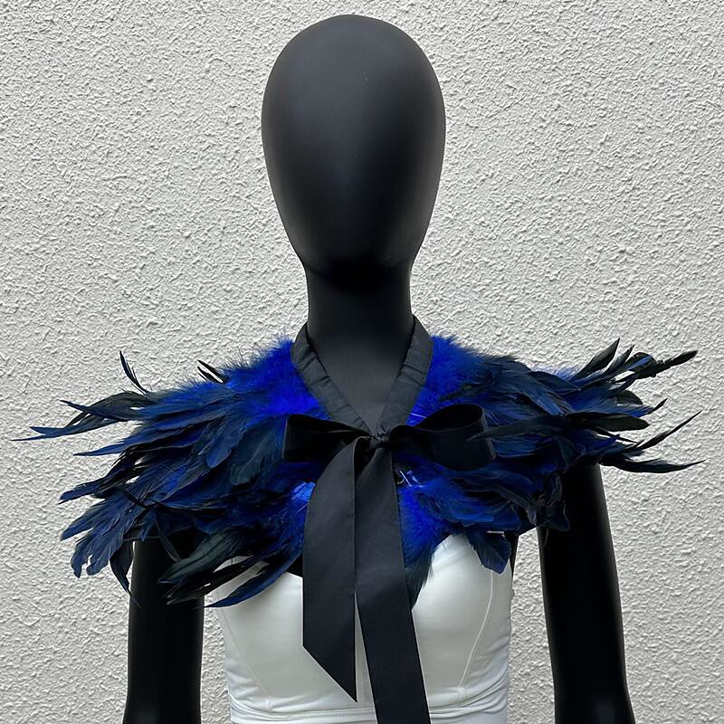 Women's Black Feather Cape Shawl with Satin Ribbon Tie, Gothic Victorian Shrug Bolero, Natural Feather Poncho Costume Accessories