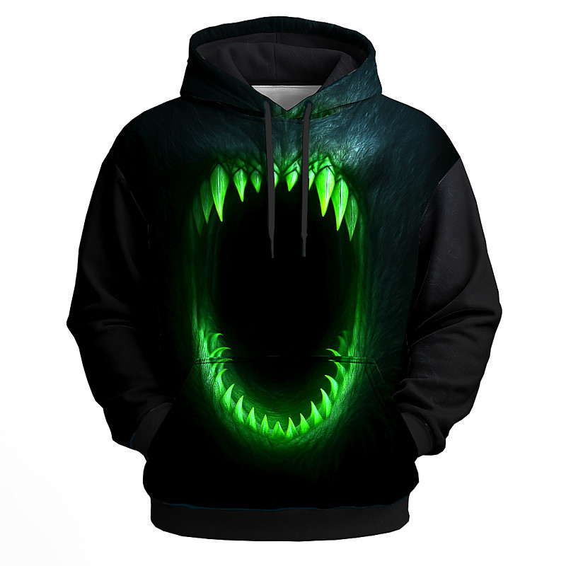Men's 3D Mouth Hoodies Sweatshirt Punk Exaggerated Gothic Casual Long Sleeve Crew Neck Hooded Club Streetwear Red Blue Green Drawstring Fall Winter Designer S M L XL XXL XXXL