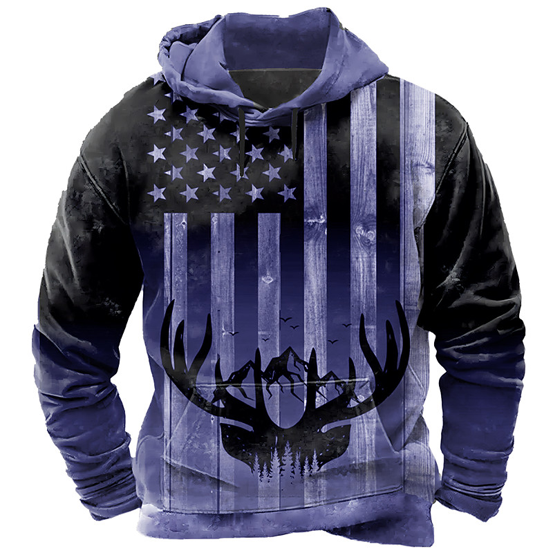Men's American US Flag Deer Hoodie Sweatshirt Fashion Classic Long Sleeve Crew Neck Outdoor Hunting Black Red Purple Drawstring Fall Winter Designer S M L XL XXL XXXL