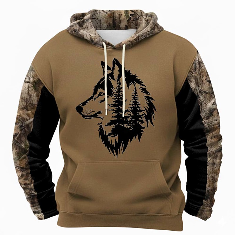 Men's Wolf Hoodie Sweatshirt Fashion Classic Crew Neck Outdoor Hunting Black Brown Khaki Brown 2 Drawstring Fall Winter Designer S M L XL XXL XXXL