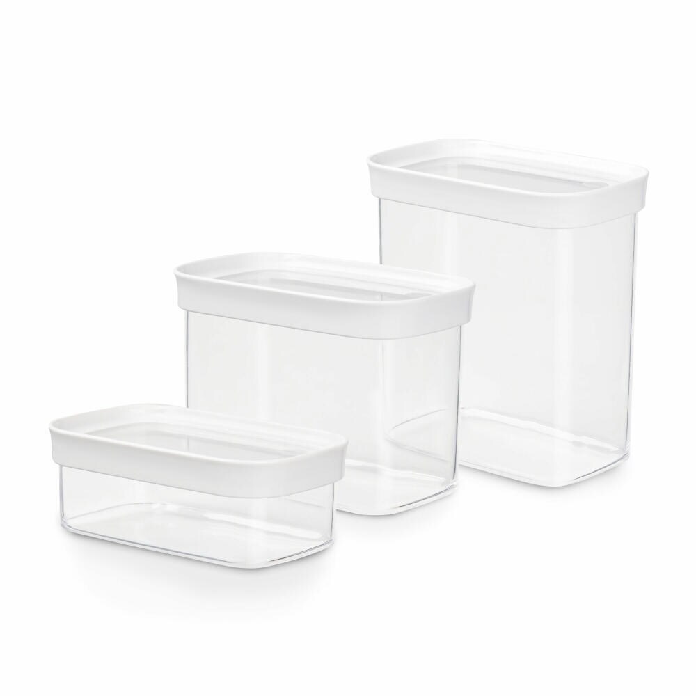 EMSA Optima Vorratsdosen Set, 3-tlg., Aufbewahrungsdosen, Vorratsode, Frischhaltedose, Kunststoff, Transparent / Weiß, N11427