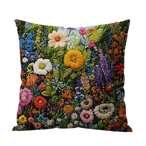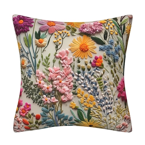 Fodera per cuscino floreale, federa decorativa con stampa piatta 2D e ricamo finto, tessuto in poliestere morbido per divano, camera da letto, soggiorno, arredamento per la casa