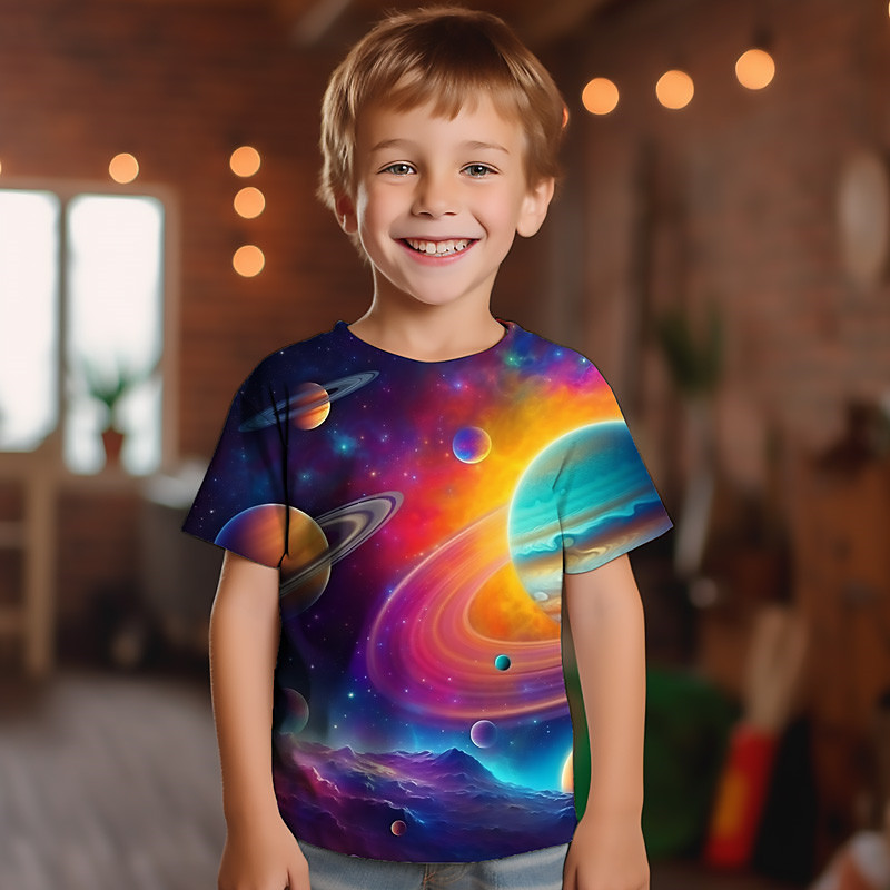 Boys 3D Graphic Galaxy Space T shirt Tee Short Sleeve 3D Print Summer Spring Active Sports Fashion Kids 3-12 Years Outdoor Casual Daily Regular Fit