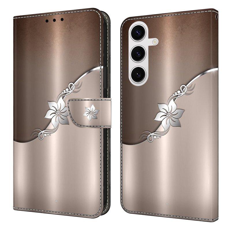 Samsung Galaxy S26 Plånboksfodral Magnetisk 3D Mönster Konstläder Silver Blomma