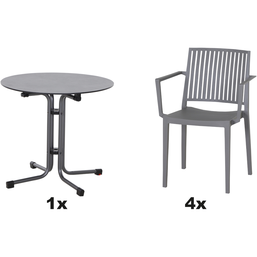 SIENA GARDEN Urban Lights Set 5teilig Lane Sessel gastrotauglich grau mit Tisch Sola Ø80