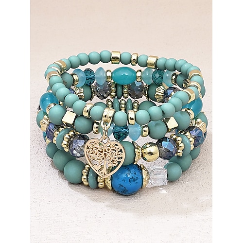 Set di braccialetti in acrilico e lega in stile boho da donna: vari colori, ciondolo a forma di cuore, perfetti per San Valentino e per l'uso quotidiano