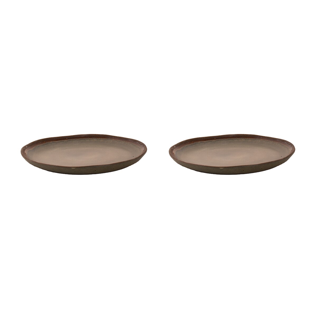 Palmer David Mucky große Teller flach - 2er-Set, Steinzeug, Ø 28 cm, moor-grün geflammt mit braunem erhöhtem Rand, für Pizza, Menü
