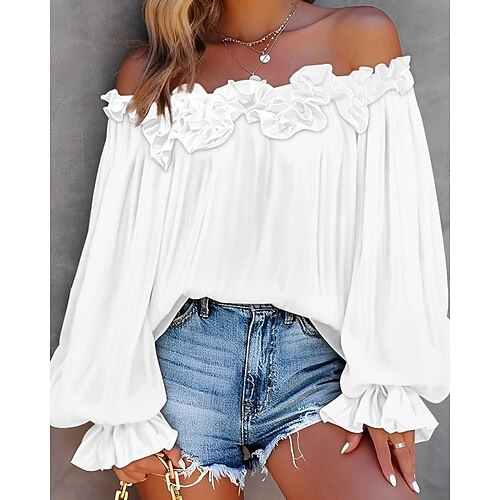 Per donna Camicia Blusa Semplice Moderno Casual Manica Lunga Senza Spalle Top Regolari Quotidiano Ferie Uscire Volant Senza schiena Nero Bianco Rosa Blu Estate