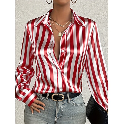Camicia da donna Elegante Top Formale Camicia da lavoro Grafica Striata Elegante Stile Casual Manica Lunga Collo Top Regolari Lavoro Quotidiano Nero Rosso Marrone Primavera Autunno Inverno