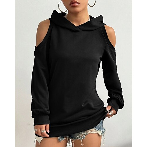 Per donna Blusa Tinta unica Elegante Casual Manica Lunga Con Cappuccio Top lunghi Quotidiano Nero Rosso Viola Grigio scuro Albicocca Primavera Autunno Inverno