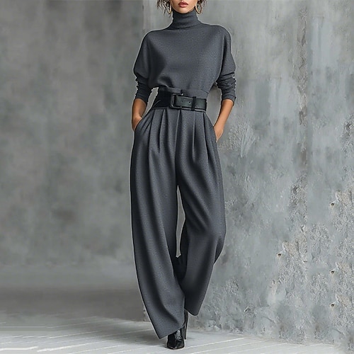 Per donna Moda Streetwear Maglietta Set di Pantaloni Bolero Top Manica Lunga Dolcevita Tinta unica All'aperto Vacanza Casuale Nero Marrone Grigio Autunno Vestibilità regolare