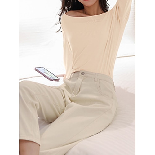 Per donna Maglietta Semplice Moda Elegante Essenziale Manica Lunga Girocollo Top Regolari Quotidiano Weekend Nero Bianco Rosa Cachi Beige Estate Primavera Autunno