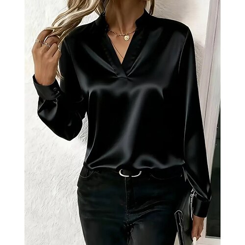 Per donna Camicia Elegant Raso/Satin Blusa Semplice Elegante Manica Lunga Scollo a V Top Regolari Quotidiano Uscire Nero Bianco Vino Verde Estate