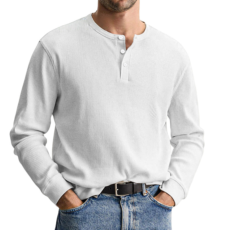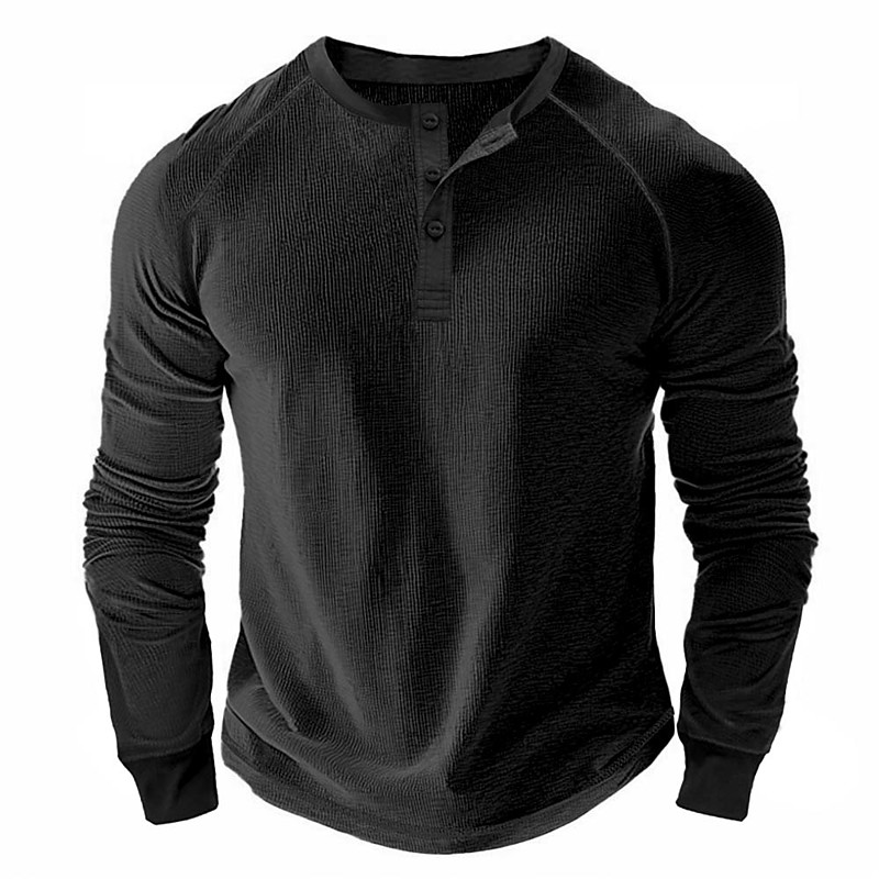 Men's Waffle T-shirt T Shirt Waffle Henley Shirt Long Sleeve Crew Neck Fall Winter Solid Color Plain Traditional / Vintage Casual Basic Outdoor Home Sports Outdoor Light Blue Black White Top Tee