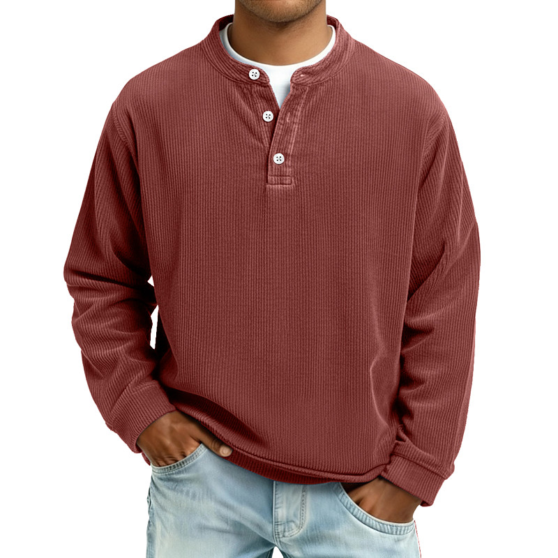 Men's Corduroy Shirt Henley Shirt Tee Long Sleeve Solid Color Plain Fashion Designer Casual Button Up Warm Henley Casual Daily Outdoor Fall Fall Winter All Seasons Black White Light Green Henley