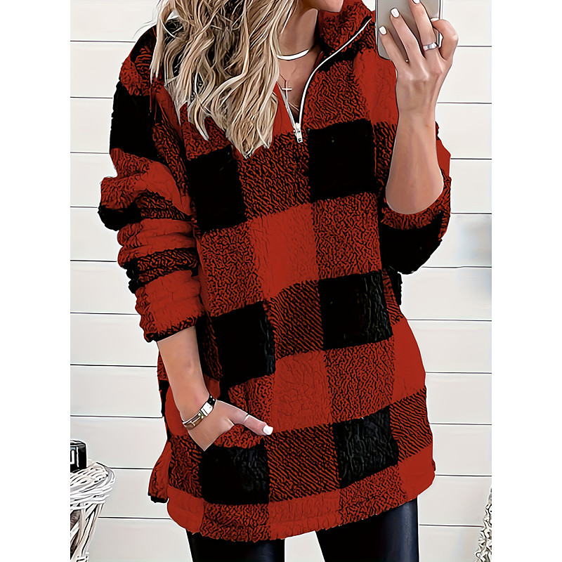 Women's Pullover Sweatshirt Graphic Plaid Casual Long Sleeve High Neck Regular Tops Street Dailywear Casual Blue Black Red Green Fall Winter