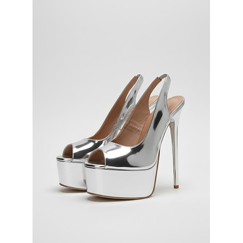 Scarpe con plateau e punta aperta da donna color argento, scarpe metallizzate per feste e serate in discoteca, scarpe sexy per il clubbing. tacchi eleganti da sera