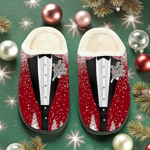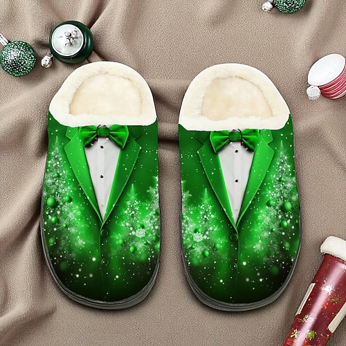 Weihnachtspantoffeln für Herren – festliches Design mit roter Fliege, warme Fleece-Hausschuhe, gemütliche Hausschuhe für Winter und Weihnachten