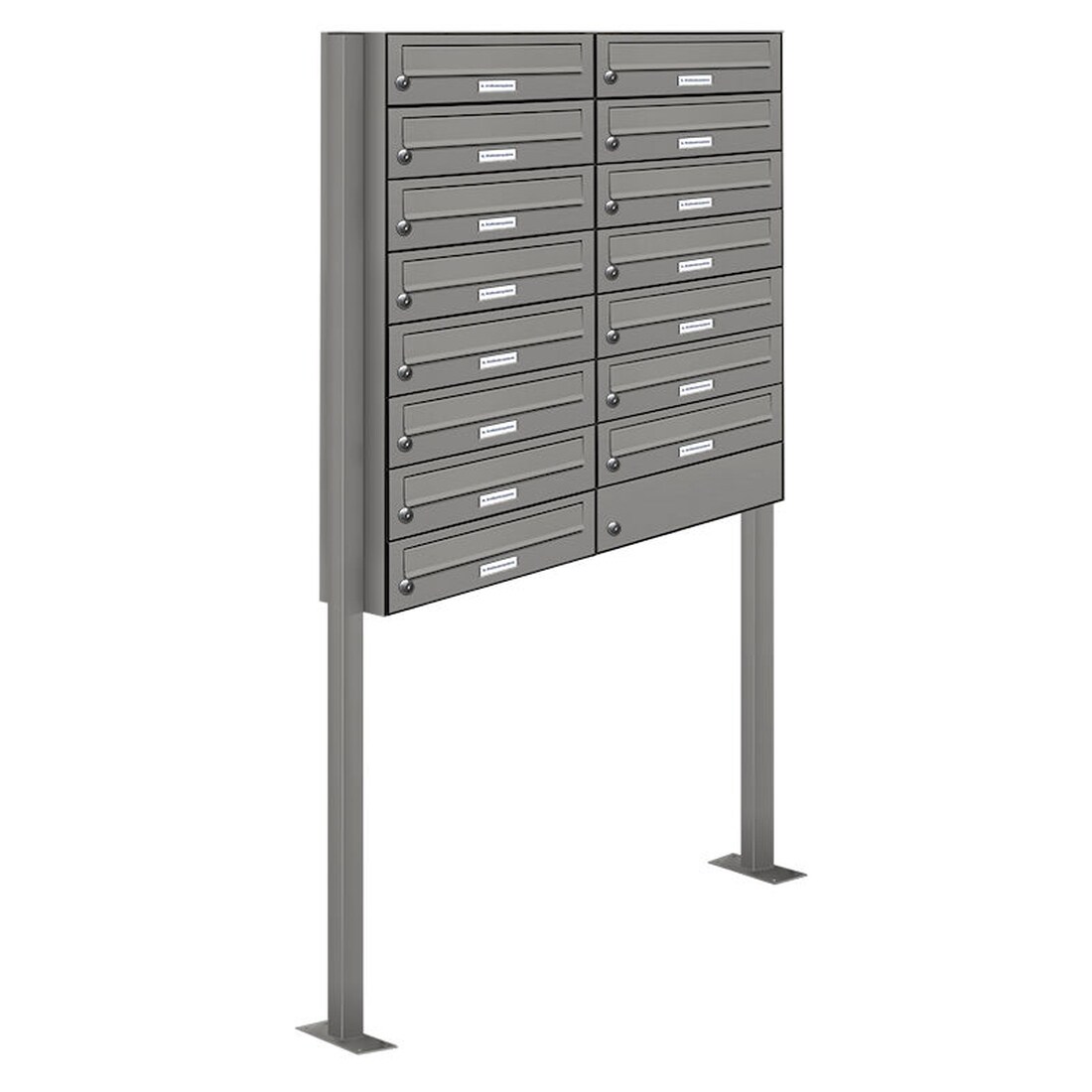 AL Briefkastensysteme 15 Fächer Premium Stand Briefkasten Anlage in RAL 9007 Aluminium Grau, Post A4, robust, wetterfest, Artikelnummer: 132P15S2P9007