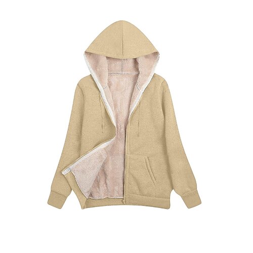 Per donna Giacca in Pile Giacca Sherpa Confortevole Traspirante Cerniera Tasca Casual Semplice Vacanza Streetwear Casuale Abbigliamento quotidiano Cerniera Regolare Con Cappuccio Vestibilità regolare