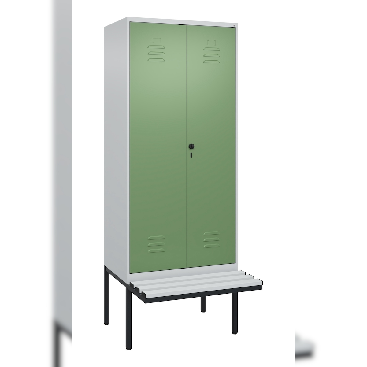 C+P Doppel-Spind Classic PLUS Kunststoff untergebaute Bank, 2 Abteile, Trennwand, HxBxT 212x60x82cm, Zylinderschloss, Hellgrau/Resedagrün von PROREGAL