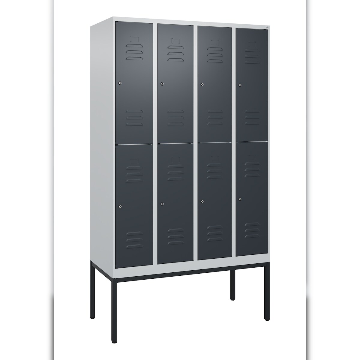C+P Z-Spind Classic PLUS, Füßen, 4 Abteile, HxBxT 195x80x50cm, Zylinderschloss, Hellgrau/Anthrazit von PROREGAL
