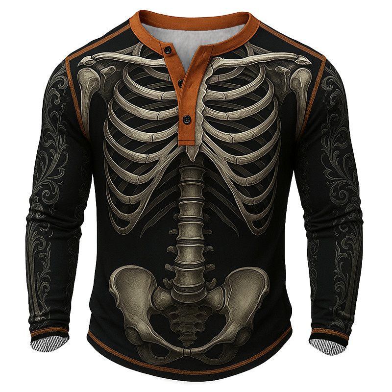 Men's Skull Cool Skulls Shirt Henley Shirt Tee Long Sleeve Vintage Fashion Designer Spirit Party Spring Fall All Seasons Red Green khaki Gray Henley Henley