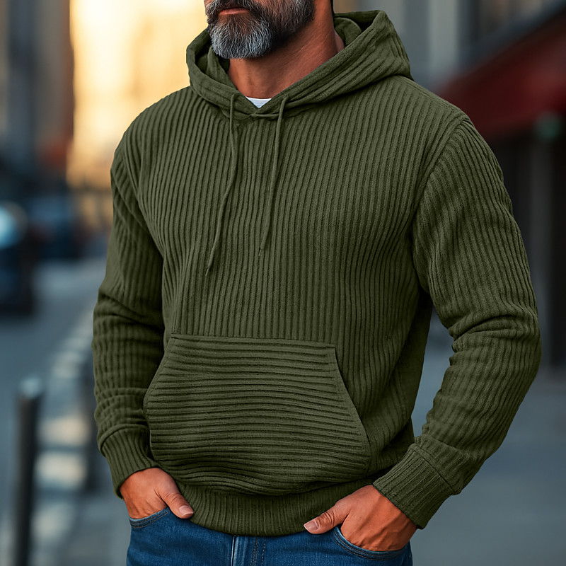 Men's Hoodie Corduroy Pullover Hoodie Sweatshirt Navy Blue Blue Camel Orange Brown Hooded Plain Textured Sports Outdoor Casual Daily Streetwear Cool Sportswear Fall Winter Clothing Apparel Hoodies