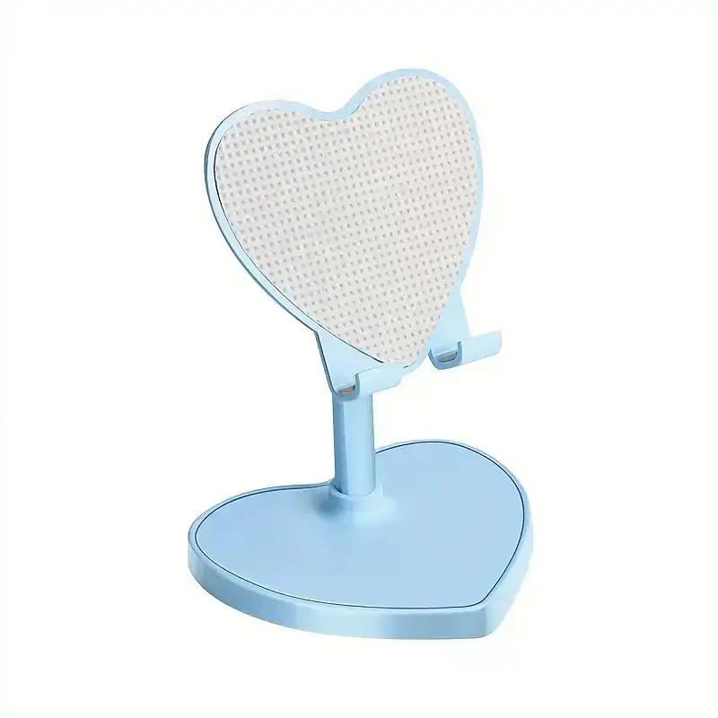 Heart-shaped desktop phone stand with an adjustable folding design compatible with various smartphones and tablets suitable for multiple mobile devices.