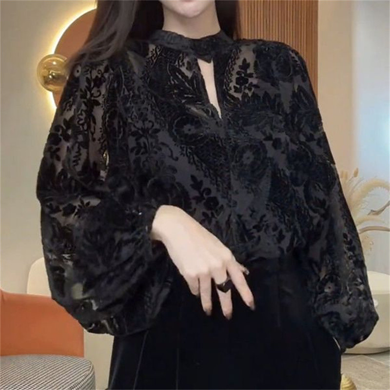 Women's White Elegant Lace Tops Eyelet Blouse Casual Long Sleeve Regular Tops Crew Neck Daily Romantic Petite Tops Summer Holiday Wear Black White Red Light Brown Spring Fall
