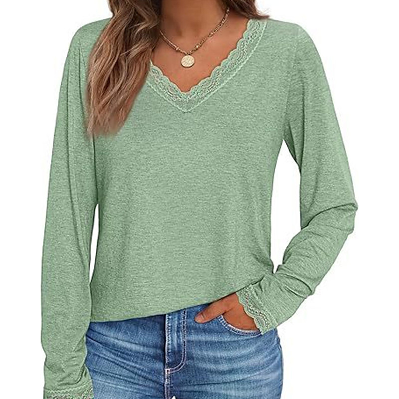 Women's Elegant Lace Tops Eyelet Blouse Solid Color Lace Eyelet Flutter Sleeve Long Sleeve Regular Tops V Neck Daily Romantic Petite Tops Summer Holiday Wear Pink Blue Purple Green Spring Fall