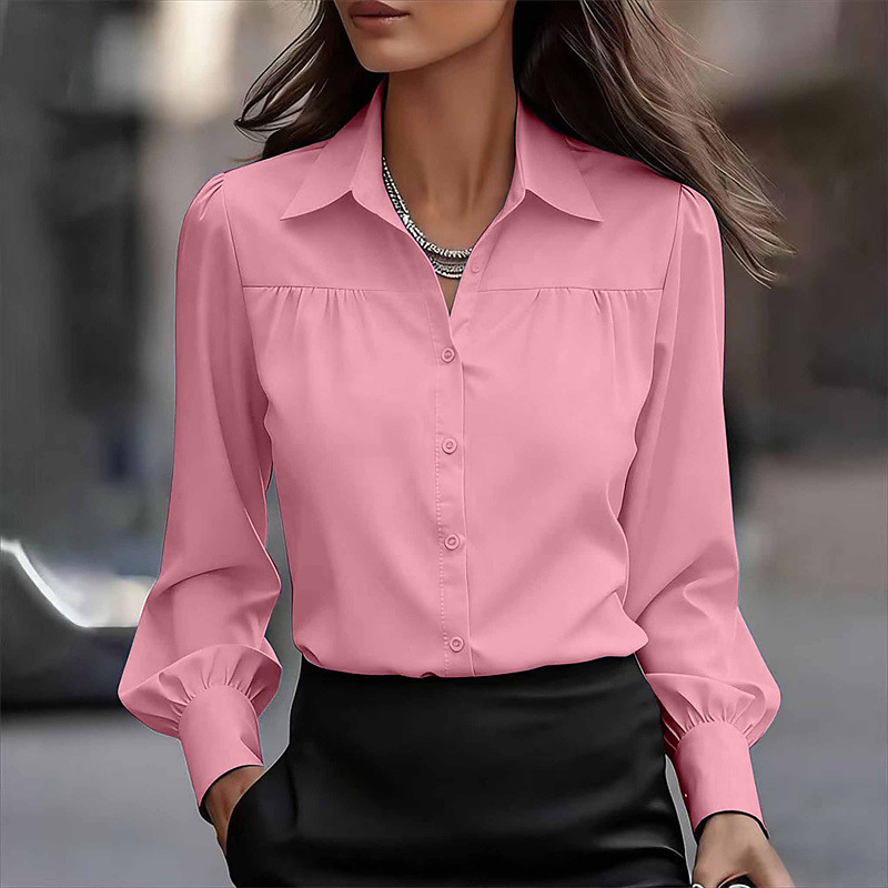 Women's Blouse Dressy Tops Chiffon Tops Solid Color Plain Elegant Vintage Cute Long Sleeve Polo Collar Regular Tops Daily Work Holiday Ruched Ruffle Patchwork White Fall Winter