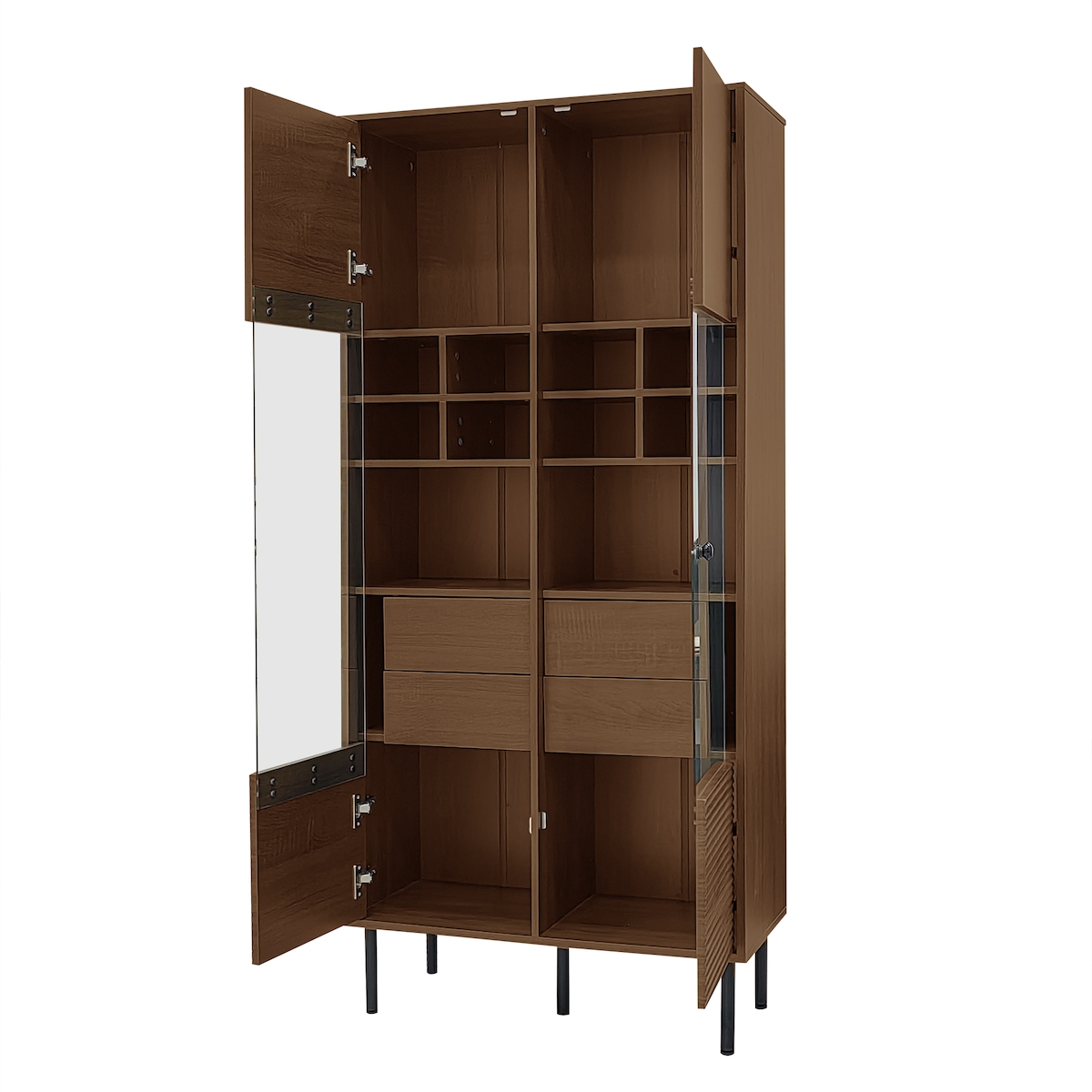 Vitrine HOME AFFAIRE "Vitrine LOLA B/T/H: 62,5/40,5/146,5cm", braun, B:62,5cm H:146,5cm T:40,5cm, FSC-zertifizierter Holzwerkstoff, Furnier, Massivholz, Schränke, Vitrine, Eiche teilmassiv, Türen mit dampfer braun Eiche, B/H/T: 62,5cm x 146,5cm x 40,5cm,